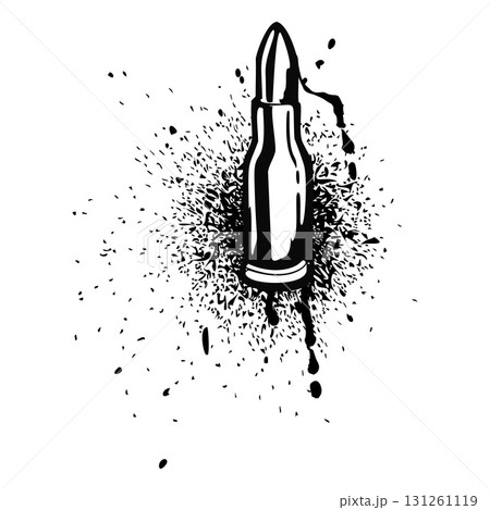 Black spray paint bullet, graffiti spraying lines weapon ammunition with ink splatters and dripping, vector street art