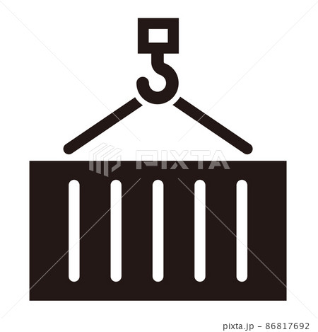 吊り下げられたコンテナのシンプルな線画アイコン/白背景