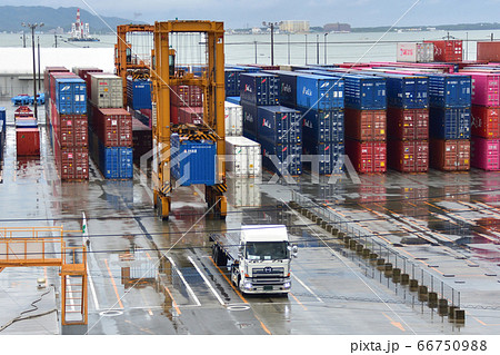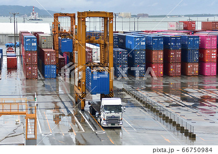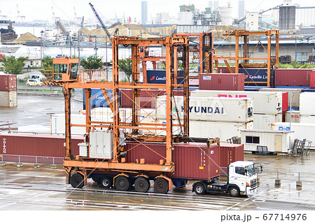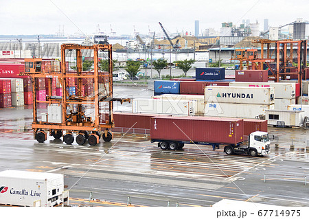 品川コンテナ埠頭のガントリークレーンとコンテナ