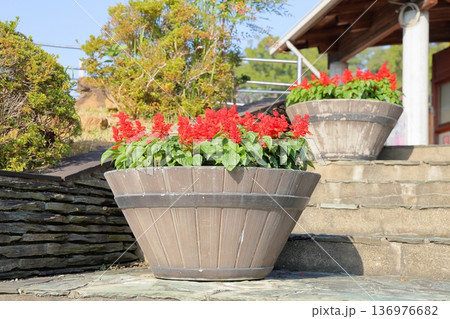群生する真っ赤なサルビア