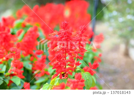 夏の公園 サルビアスプレンデンスの花