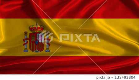Flag of Spain with fabric textured background. Close up of National flag of Spain with realistic texture
