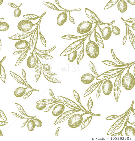 Olive print. Vector seamless plant and oil fruit