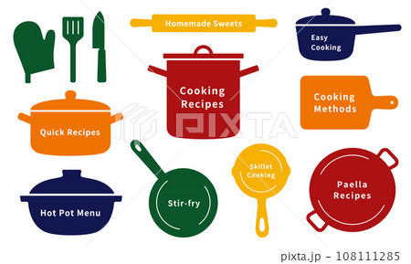 料理のレシピやメニューのタイトルや見出しに使えそうなキッチンツールのアイコンセット