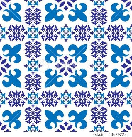 Seamless pattern Talavera. Azulejos portugal. Moroccan tile mosaic. Spanish pottery. Turkish ornament. Ethnic background. Mediterranean seamless wallpaper, textile, embroidery, patchwork.