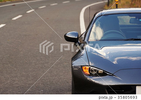ドライブイメージ 路肩の停めたスポーツカーのフロント
