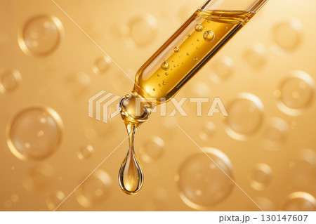 黄金色の美容オイルが滴る高級感あるスキンケアイメージ