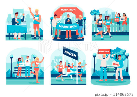 City marathon illustrations in flat design