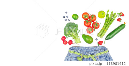 dieting concept with oversized jeans. Successful weight loss. healthy food menu. Diet concept