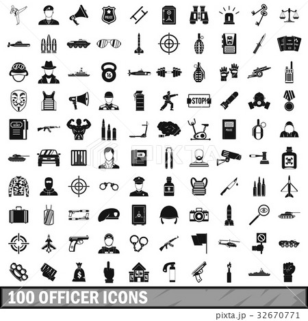 100 officer icons set, simple style