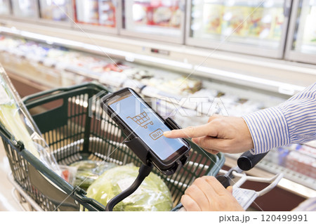 スーパーでスマホ決済キャッシュレスイメージ デジタルトランスフォーメーション