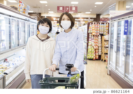 スーパーで買い物をする親子 母娘