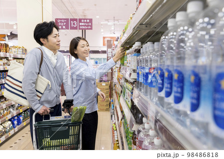 スーパーでお米を買う夫婦