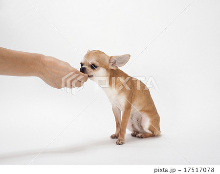 手から餌をもらうスムースチワワ