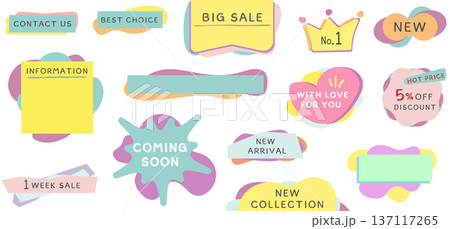 カラフルでポップなフレーム、バナーセット ベクターイラスト 白背景 コピースペース セール ハート