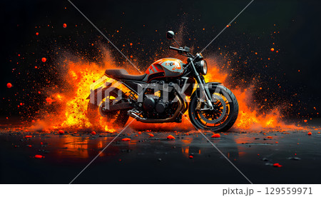 Dynamic motorcycle against a vibrant explosion of color in a dark studio setting