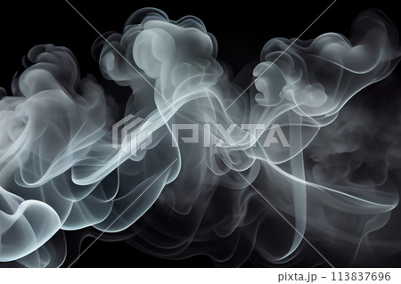 黒背景で撮影した湯気、蒸気、水蒸気、煙、エアロゾル