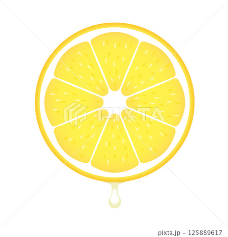 果汁がしたたるフレッシュな輪切りレモンの断面 - レモン果汁やビタミンC、酸味のイメージイラスト素材