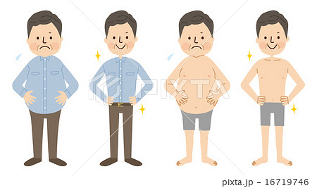 ベクターイラスト素材:ダイエットする男性、人物セット