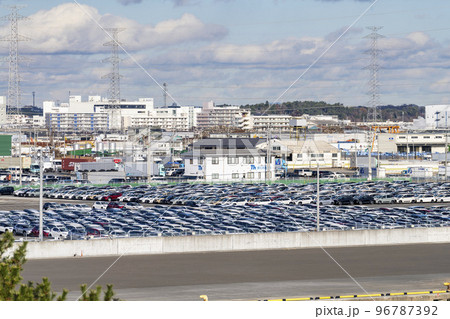 スリーエム 仙台港パークからみた冬の仙台港の風景 出荷する自動車 宮城県仙台市
