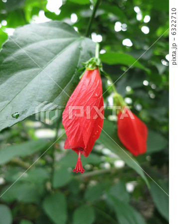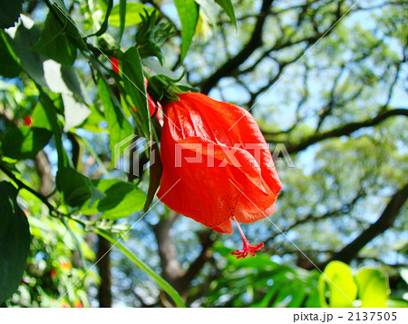 下向きの緋赤色の花熱帯アメリカ原産のウナズキヒメフヨウ