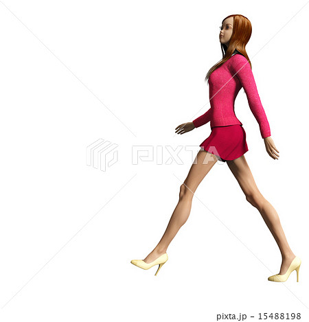 歩くモデル体型の女性 perming 3DCG イラスト素材