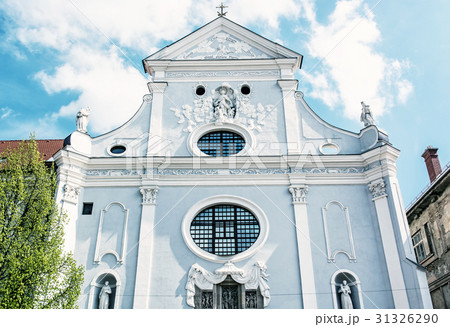 Church of the Assumption of the Virgin Mary dominating Namestie Stefana Moysesa square in Banska Bystrica, Slovakia