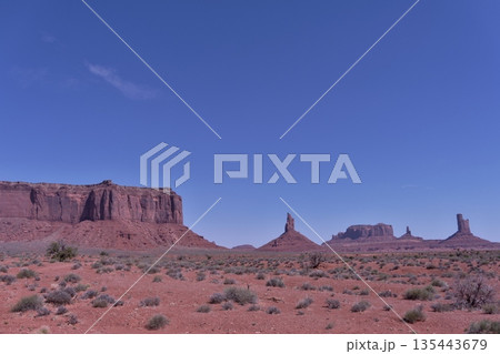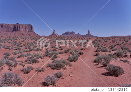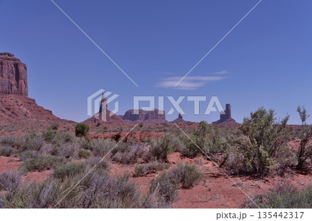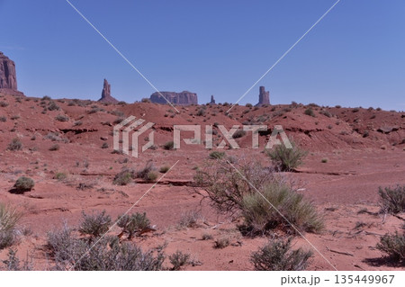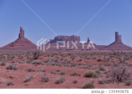 モニュメントバレ-のワイルドキャットトレール4Km地点から北側のブライアムズ・ツームとセンチネルメサ