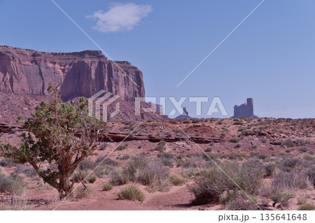 モニュメントバレ-のワイルドキャットトレール5.5Km地点北側のブライアムズ・ツームとセンチネルメサ