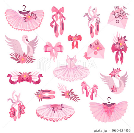 Pink Ballet Accessories with Tutu Skirt and Pointe Shoes Big Vector Set