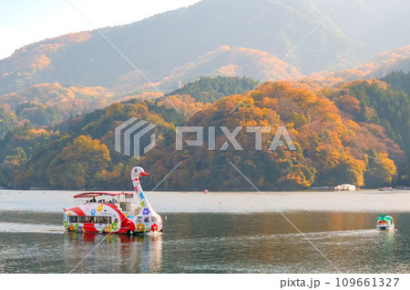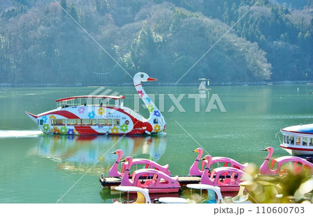 相模湖のニュースワン丸とスワンボート