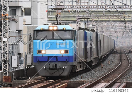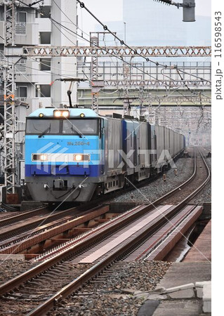 早朝 梅田貨物線を通過する スーパーレールカーゴ 高速貨物電車