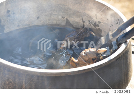 釜に入れられるズガニ