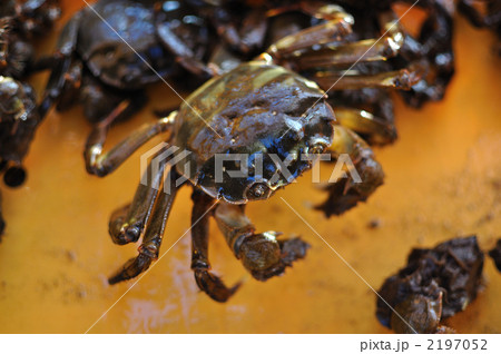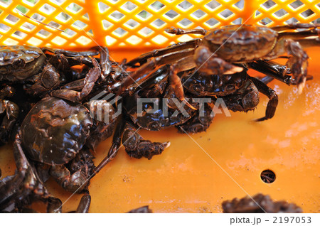 上海蟹と同族で脂がのったこの時期美味しい。生きたモクズガニの写真