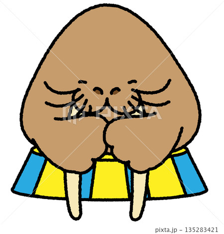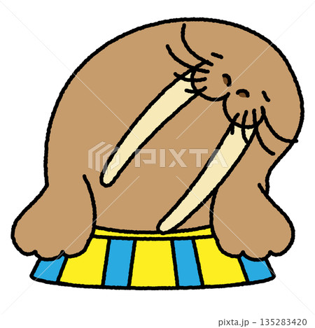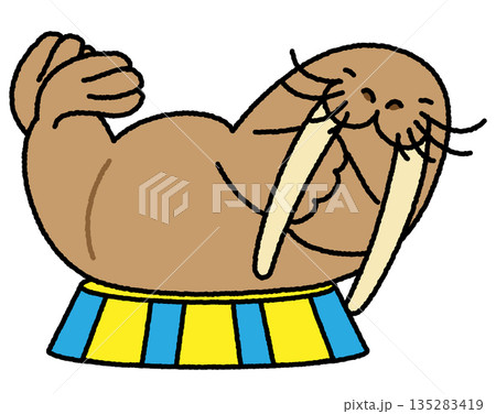 丸まってクロワッサンのような形になるセイウチのコミカルなイラスト