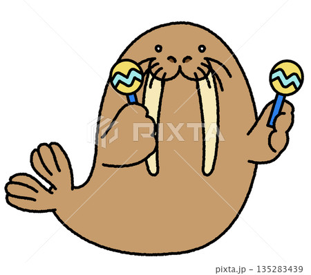 マラカスを持って演奏するセイウチのかわいいイラスト