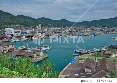高松市庵治町、庵治半島の先端、遠景は小豆島