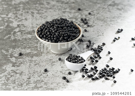Black beans on gray background