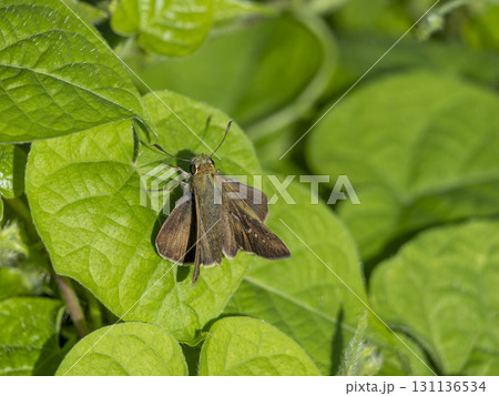 葉に止まるセセリチョウ科オオチャバネセセリ