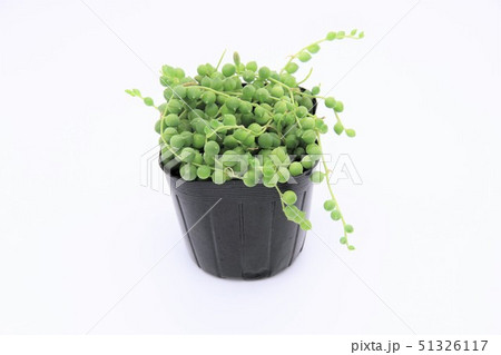 観葉植物、グリーンネックレスの鉢植え【白背景】