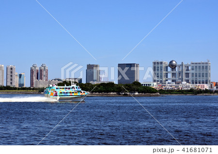 高速ジェット船の停泊する東京港の風景