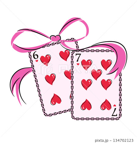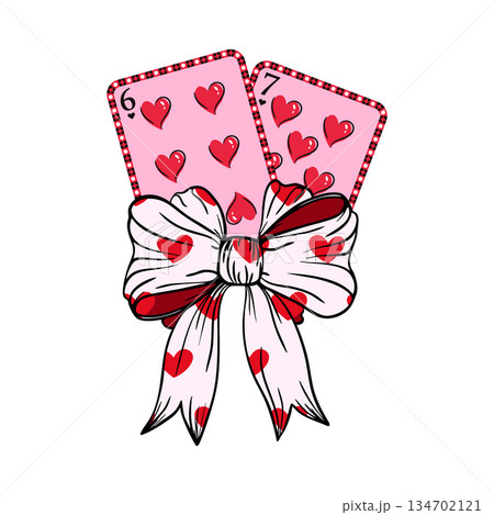 67 Valentine Day Cards meme with hearts detail. Preppy Bow ribbon Six Seven Valentines Coquette Funny Shirt Design