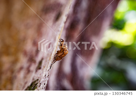 セミの抜け殻 セミ 幼虫 脱皮 羽化 夏 真夏 夏休み 自然 樹木 木