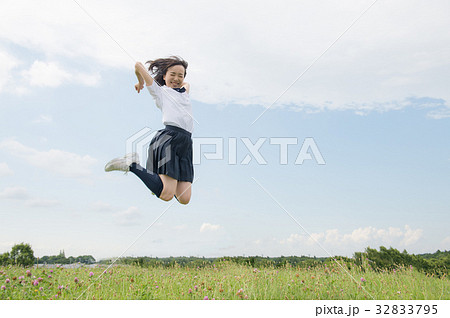 走る若い日本人女性 ジョギング スポーツ 新緑