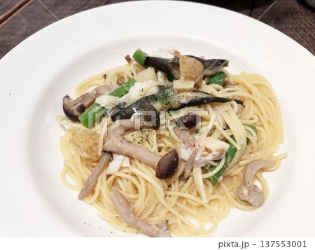 鯖とキノコとナスのペペロンチーノパスタ