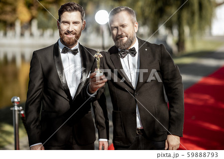 Film actors on the red carpet outdoors
