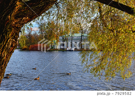 Autumn landscape with "Grot" pavillion in Catherine garden, Push