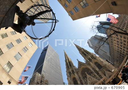 高層ビル上階から見たロックフェラープラザ周辺