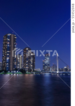 都市夜景 隅田川と中央大橋と佃島のタワーマンション群