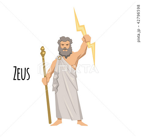 Zeus, the Father of Gods and men, ancient Greek god of sky. Mythology. Flat vector illustration